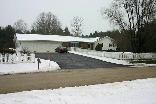 3 bedroom ranch on 1.25 acres, fenced all round corner lot property.Located in rural area with other large acre + properties and homes. Plenty of room for additional outside parking plus a 3 car garage with inside entrance to a very large 2 part finished -unfinished basement, lots of expansion possibilities. 3 seasons room at rear off dining area. Established trees throughout property. 1 year Home Warranty Included.