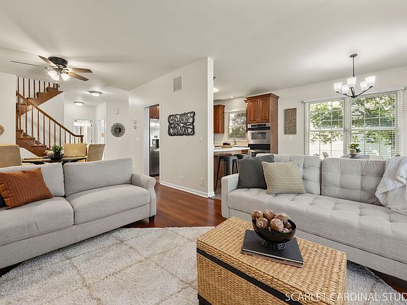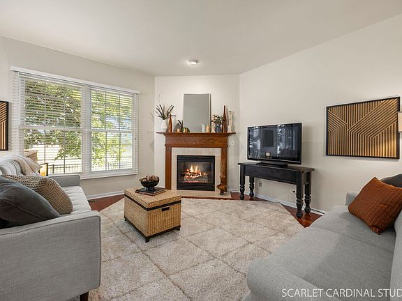 **Multiple Offers. Highest and Best Due Monday September 22nd at 4pm ** Experience easy townhome living in this versatile 4-bedroom layout-or 3 bedrooms plus a main-floor office. Rich hardwood floors and white doors and trim set a timeless tone throughout. The living room features a direct-vent fireplace and an open, flexible design with an additional area perfect for a second dining table or additional living room space. The kitchen boasts stainless steel appliances, a double oven, crown molding, and breakfast bar while the main-floor laundry adds convenience with built-in cabinetry. Step outside to a nicely sized wood deck with gas line grill access ideal for outdoor enjoyment. Upstairs, the primary suite impresses with vaulted ceilings, an oversized walk-in closet, and an impressive bath complete with whirlpool tub, separate shower/toilet area, and dual vanities with knee space. The hall bath has great elbow room as well with dual sinks and a large linen closet. A full lookout basement provides plenty of storage or the opportunity to finish for extra living space. Freshly painted in 2025, with updates including High Efficiency 2-Stage Furnace and Air Conditioner (2023), Roof (2019), most Appliances have been replaced within the last 10 years. Sump and Ejector Pump (2023). Located in sought-after District 200 schools. With abundant light and a private setting, this end unit is an ideal fit for modern living.