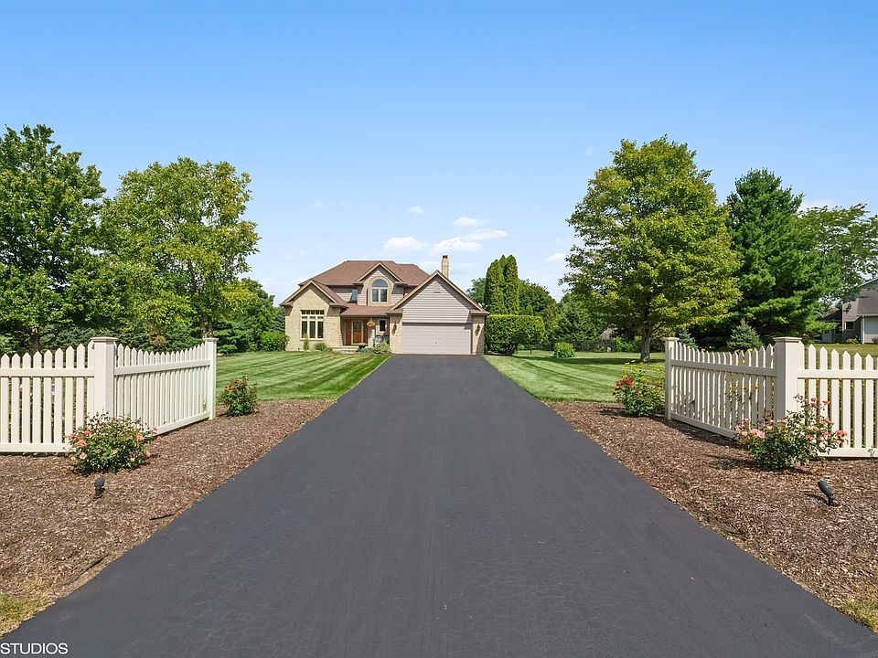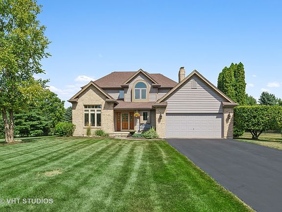 One step into this home and you will fall in love with it! There is absolutely nothing to do. The house and yard have been completely updated. This home sits on 1.3 acres with beautiful, mature trees and tons of privacy. The interior has been freshly painted, white trim, white cabinets, granite counter tops, stainless steel appliances, updated bathrooms, crown moldings, gleaming hardwood floors, built-in cabinets in Family Room and Living Room, surround sound, brick fireplace, epoxied garage floor, newer roof, newer furnace, fenced in yard with iron railings, a beautiful deck, outdoor lighting, brick walkway, a storage shed, 4 bedrooms plus a first floor study. This home is minutes away from the Metra and Randall Road Shopping. This home has the feel of country living in the small subdivision of Native Prairie. Come see it! You won't be disappointed.