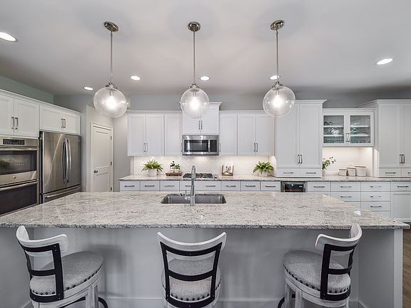 Run, don't walk to this stunning custom Airhart home located in coveted Fisher Farm subdivision. Featuring golf course views. Constructed in 2017 as a model home, this property is fully loaded with luxury amenities including; stunning custom millwork and ceiling detail, neutral paint paint colors, custom light fixtures and deep, covered front porch. First floor master bedroom with ensuite bath and walk-in closet. First floor office with direct access to full bath could easily serve as a second first floor bedroom. Open floor plan concept is perfect for everyday living or entertaining a crowd. On-trend white kitchen is anchored by a huge center island and features large eating area. Family room features direct vent fireplace. Large separate dining area. Second floor features large loft area, two additional bedrooms and full bath. Unfinished deep pour basement. Simply move-in!