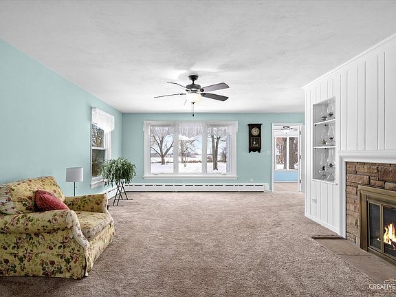 Exceptional ranch on 1 acre. 3 bedrooms, 1 1/2 baths. Large living room with wood burning fireplace. Sunroom to enjoy year round. Great views of the back yard with mature trees. Large 1st floor laundry. Full basement. 2 car attached, heated garage. Lots of storage. Fenced patio. All this on a quiet paved road. Geneva Schools. Close to LaFox or Elburn Metra. Updates include new interior and exterior doors, windows, carpet, baths, paint...so much more. "As-Is" Estate.
