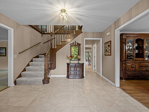 Welcome to this spacious colonial style home located in the highly desirable Woods of Cantigny. Sitting on just over an acre, this 3,332 square foot home has 4 bedrooms, 2 full baths and one-half bath. Upon entering this home, you will appreciate the large foyer that showcases a formal dining room and living room just off the entry and a winding staircase to the upper level. Your eyes will also catch a view of the large backyard with beautiful oak and pine trees that enclose the property. The main floor has an appealing balance of formal designated spaces and open concept spaces that flow together seamlessly. Highlights on the main floor include an office, a four-season room and a second entrance. The first-floor office has a wall of custom built in bookcases. The office has double pocket doors for additional privacy, and a patio door leads out to the deck and back yard. A wonderful four-season room along the back of the home extends your year-round living space. The sunroom is filled with oversized windows to let you enjoy the park-like setting of the backyard from inside or step through patio doors to enjoy the outdoors on the low maintenance composite deck. There is a second entrance at the front of the home in a breezeway area between the 3-car garage and the main house that serves as a mudroom and contains the laundry room. These custom features are unique to this style of home and really set it apart. The large eat-in-kitchen has stainless steel appliances and granite countertops. Plenty of storage exists in the kitchen and a butler's pantry adds a wall of storage cabinets and extra counter space for a coffee bar. The kitchen and family room are open concept spaces. The family room is a great gathering and entertaining area with a wet bar, built in shelving, a gas fireplace and access to both the outdoor deck and four-season room. Upstairs you will find four bedrooms connected by a landing area that provides a spacious closet for linen storage. The primary suite easily accommodates a king-sized bed, has a walk-in closet and includes an adjoining space that could serve as a second office, nursery, work out area or TV room. The primary ensuite has been entirely updated for a separate shower and soaking tub, ceramic flooring, and dual sink cabinetry. The second and third bedrooms feature walk-in closets. The upstairs full bath has an oversized shower and updated flooring, cabinets and countertops. The basement is unfinished and ready to be your custom designed space. The Woods of Cantigny is a community of custom homes set on beautifully landscaped one-acre wooded lots. The community is surrounded by other natural areas and event centers including Cantigny Park, St. James Farm, Blackwell Forest Preserve, Prairie Path Trails and Cantigny Golf Course. Downtown Winfield is less than 2 miles away and is home to Northwestern Central DuPage Hospital and the Metra UP West rail line. Take a short 15-minute ride to enjoy Geneva or Wheaton or hop on the nearby I-88 tollway for longer drives. Area schools are Currier Elementary, Leman Middle, Community High School and Wheaton Academy in West Chicago and St. Francis High School in Wheaton.