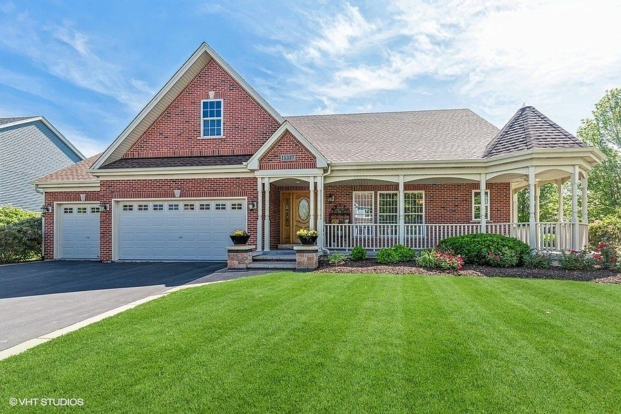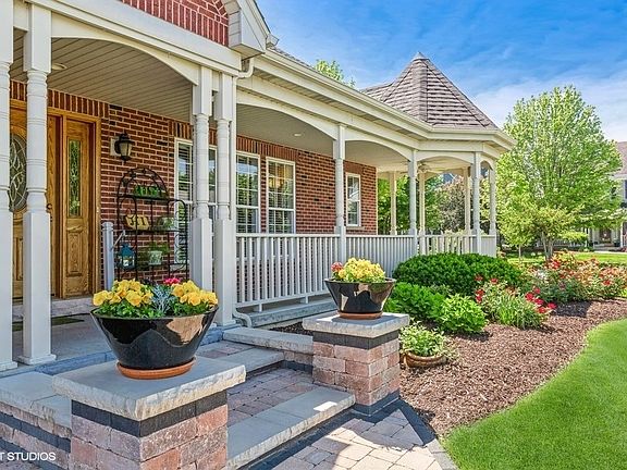 *** MULTIPLE OFFERS RECEIVED - SELLER IS ASKING FOR HIGHEST AND BEST BY NOON on 6\4. *** HOUSE BEAUTIFUL *** Upgrades abound with exquisite millwork and attention to detail throughout! FIRST FLOOR MASTER features bay window, crown molding and has direct French door access to charming wrap around porch with turret roof. UPDATED Master Bath has separate tub and shower and leads to large WIC with organizer including built-in laundry basket. GORGEOUS kitchen boasts white/cream cabinets with bubbled glass doors, pull-out shelving, crown molding and under cabinet lighting, NEWER appliances, breakfast bar island, granite counters and eat in area with hardwood flooring. Great Room/Family Room with volume ceiling includes UPDATED stone fireplace and custom window placement to allow for plenty of sunshine. Vaulted Sun Room off of kitchen features 3 walls of windows and ceiling fan heater which allows for late fall/early winter entertaining. Conveniently located first floor den with double French door entry and travertine stone flooring makes for perfect home office. Formal dining room can easily accommodate all of your holiday gatherings and boasts stylish wainscoting, hardwood flooring and crown molding. Recently redone half bath has raised bowl sink and ceramic flooring. Laundry room with travertine tile floor, white cabinets, deep sink and NEW washer and dryer in 2019. Upstairs you will find 2 generous size bedrooms with plenty of closet space, full bath and loft area which makes for great reading nook. Looking for more space? Come check out the finished basement with HUGE rec room, craft/work area with built in white cabinets, full bath and TWO storage areas. Don't miss the the custom designed stamped concrete patio with outdoor gas start fireplace and magnificent professionally landscaped yard in 2021. Other outstanding features include NEW Furnace, Humidifier and A/C in December 2020 ~ NEW Roof in 2017 ~ NEW Hardy Board Siding in 2015 ~ All NEW Windows in 2015 ~ NEW Water Heater in 2015 ~ NEW Front Brick Pillars and Sidewalk in 2018 ~ Crown Molding Throughout ~ Encased Windows ~ Garage with Slat Wall Panels ~ the list goes on and on. Bring your Fussiest Buyers ** This Home Will NOT Disappoint **