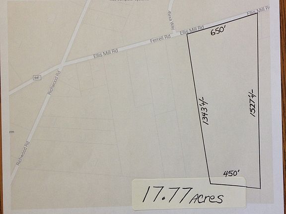 17.77 acre lot. 650ft road frontage. 450ft across rear approx. 1400ft +/- deep The photo is old, there is nice housing being built across the street from this lot. If you have any questions I can be reached at 609-471-eight eight six zero. Thanks