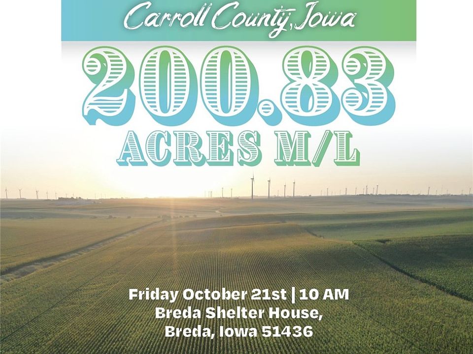 Carroll County, Iowa Land Auction – Mark your calendar for Friday, October 21st, 2022 at 10:00 AM! We are honored to represent the Melvin L. and Donita A. Nieland Revocable Trust in the sale of 200.83 total acres m/l of prime Carroll County, Iowa farmland with top-producing clay loam soils! Tract #1 is located in the northeast quarter of Section 27 and Tract #2 is located in the northwest quarter of Section 26 of Wheatland Township, Carroll County, Iowa. Tract 1: 78.55 Acres M/L with 75.75 FSA cropland acres carrying a CSR2 value of 76.3. Tract 2: 122.28 Acres M/L with estimated 118.55 FSA cropland acres with a CSR2 rating of 79.4.