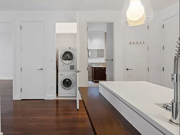 Sleek white lacquer cabinetryWasher and dryerSpa-inspired bathroomWalk-in closetStandard closetTop-of-the-line stainless steel appliancesDeep soaking tub
