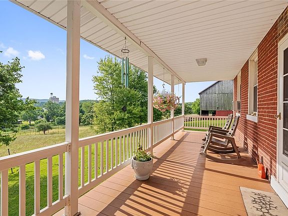 Get ready to fall in love! This is your opportunity to own this gracious circa 1856 brick farmhouse in East Huntingdon Township now situated on 57 ACRES!!! Come make this your homestead and live off the land! This property would make a great wedding venue and more. The possibilities are endless! The home is well maintained with so much charm & character! Kitchen features custom cherry cabinets & plenty of storage. Custom cherry hardwood flooring & paneling throughout! The living room features a stone cased wood burning fireplace. Large front porch overlooks the farm in the quiet country setting. Upstairs are 3 bedrooms & a full bath. The basement is finished with a bedroom, gorgeous full bath, laundry room & office area. Large bank barn & outbuildings. Fenced pastures & tillable land for your crops along with some wooded property. Property borders Jacobs Creek and has beautiful pastures! Free Public Sewage Tap. Possible income from leasing farm or rental of the "schoolhouse"