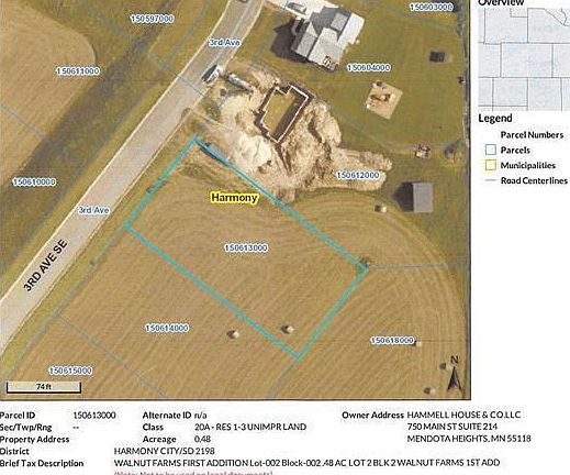 Build your new home in Harmony! This lot offers the opportunity for a home with or without a basement. Spacious .48-acre lot, surveyed on the south edge of town, offer easy access and endless possibilities from gardening to room for outdoor fun and relaxation surveyed and all assessments paid. All assessments & property taxes are paid up to date by seller.
