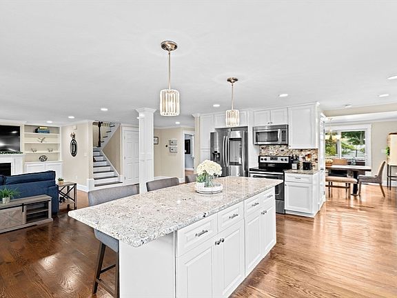 Located in coveted Sunset Point, this beautifully renovated coastal gem offers four levels of versatile living with sweeping views of the bay and Worlds End. The main floor features a bright, open kitchen, dining, and living area with custom built-ins, gas fireplace, and large island, ideal for everyday living and entertaining. The dining area opens to a back deck for easy indoor-outdoor flow. A first-floor bedroom offers flexibility for guests or a quiet study. Upstairs, the primary suite includes a spa-like bath, walk-in closet, and private balcony. Two additional bedrooms and a full bath complete the second floor. The top floor is perfect for a studio, media room, or home office with its own balcony. The finished lower level includes a wet bar, gas fireplace, and full bath. Additional highlights include central air, a whole house generator, hot tub, shed, sprinkler system, public water, and nearby boat ramp.