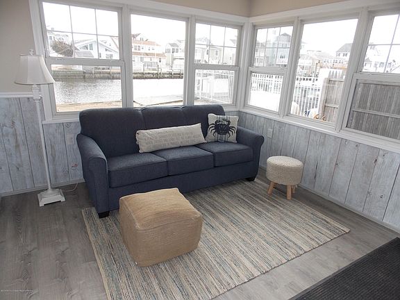 Beautifully renovated Waterfront Summer weekly rental! Nicely furnished 4 bedrooms,2 baths,Large open living room with coffee/wine bar.Plenty of room for all to share meals in the spacious kitchen with counter seating in addition to large dining table w/ wainscoting bench seating along the full wall.2 sweet sun porches with full water views for additional living space! Separate laundry area too. Professionally landscaped, huge paver patio with custom built outdoor custom stone accented BBQ & outdoor shower. 100' dock on deep water lagoon for all your boating pleasures plus, 4' overhang decking off dock.Room for the jetskis too! Off street parking for up to 6 cars, depending upon size. 8 beach badges included too! Experience the Jersey Shore at its best! Hurry in now before it's too late!