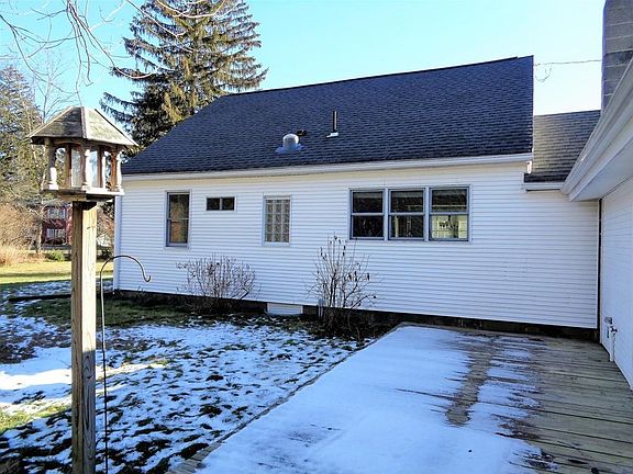 THURSDAY TWILIGHT OPEN HOUSE CANCELLED. Artistic Cape with spacious family room and bonus room additions, near the center of historic Brimfield! Tiled, mudroom entry with plenty of space for all your snow boots and backpacks. Sun-filled kitchen designed by a baker, has a desirable open floor plan w/newer stainless steel appliances, 2 pantry closets, recessed lighting, butcher block & tiled counters, modern open shelving & HW floors. Dining room has HW floors, bead board, charming corner cupboard & glass French doors. First floor master w/HW floors & a fantastic walk-in closet. Cathedral ceiling family room w/cozy pellet stove (2015) and tiled floor, leads to a very spacious bonus room, 1st floor full bath w/walk-in tiled shower, custom vanity & wood floor dressing area. The 2nd floor has 2 spacious bedrooms w/wood floors and a unique 1/2 bath with an very cool glass bead floor. Spacious back deck, updated roof, siding and septic!