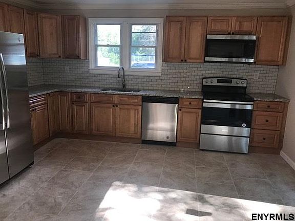 This one will not last! Sharp superior 3 bedroom Colonie ranch has been pretty much completely remodeled and is move right in! Features include huge eat in kitchen with granite countertops and stainless steel appliances, large living rm with hardwood floors, bedrooms with hardwood floors, 1st floor laundry rm, remodeled bathroom, new driveway, crown moldings, pull down attic for storage, landscaped yard, new privacy fence, windows, roof, siding, much more! No showings till open house Sunday 8/13 11:30-1:30.