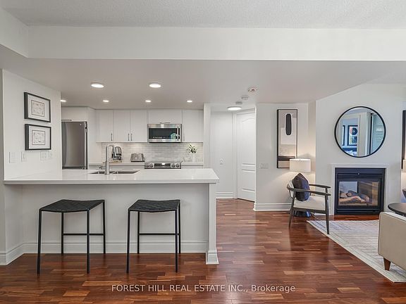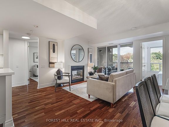 Nestled in the coveted enclave of Lytton Park in a boutique building with only 31 exclusive suites and situated on one of the most picturesque streets, shaded by a lush canopy of mature trees, this beautiful 2 bedroom, 2 bathroom residence has been thoughtfully renovated to captivate. The expansive open-concept living and dining rooms are adorned by a unique two-sided gas fireplace, creating an inviting ambiance for cozy evenings. The living area seamlessly flows to a generous covered terrace, offering enchanting treetop views, an ideal setting for both intimate gatherings and sophisticated entertaining. The modern Chef's kitchen exudes elegance, featuring custom cabinetry, stainless steel appliances, and a stylish quartz breakfast bar, perfect for culinary enthusiasts. The primary suite is a true sanctuary, generously proportioned, complete with a sitting area, fireplace and a luxurious 5 piece spa like bathroom. An additional bright bedroom serves as a perfect guest retreat or a productive home office, equipped with a Gardall safe. Just steps away, vibrant Yonge Street awaits, offering an array of fabulous restaurants, boutique shops, serene Sherwood Park and picturesque walking trails. This prestigious address represents the epitome of Lawrence Park living, where sophistication meets comfort in a turnkey suite ready to embrace its new owners. Discover the lifestyle you've been longing for in this exceptional home.