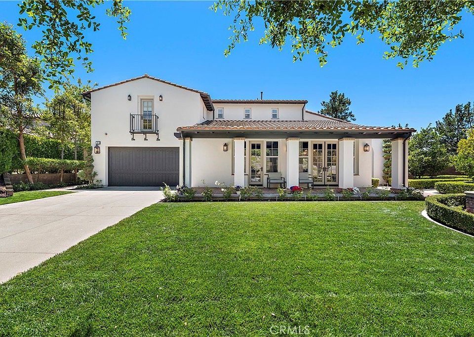 Newly upgraded and remodeled, this undeniably upscale residence blends classic elegance with modern sophistication. The magnificent home is embraced by a premium corner site at Arboledo in the guard-gated enclave of Covenant Hills in Ladera Ranch. Bordering only one direct neighbor and across the street from a beautiful park, grounds extend approximately 12,387 square feet, allowing generous space for a swimming pool, putting green, built-in BBQ island, brick decking, an orchard with formal boxwood hedges, an open-air fireplace, large front lawn, mature shade trees, and a long driveway leading to a three-car garage. Graced with handsome Spanish Colonial Revival architecture, the impressive residence invites guests to relax on a long, covered verandah located next to an arched entry door. An abundance of elegant updates inside inclusive of: high ceilings, New custom lighting, New Flooring throughout, amazing arched iron Pinky's door and exquisite millwork, including crown molding, window casings and custom built-ins, complement the interior’s luxurious living spaces. Approximately 3,700 square feet, the two-level floorplan presents four ensuite bedrooms and four- and one-half baths. One suite is located on the main floor, another suite features a Juliet balcony on the second level, and the primary suite displays scenic views, a walk-in closet with built-ins, a sit-down vanity, two sinks, a vaulted ceiling, jetted tub and separate shower. Formal gatherings will be cherished in a dining room with two sets of French doors, and the family room is anchored by a built-in entertainment center and a large white stone fireplace. An office with built-ins opens to the veranda, the bonus room is exceptionally versatile, and the laundry room features an adjacent storage room or play room. The kitchen showcases a newer remodel, complete with quartz countertops, white cabinetry with glass uppers, a walk-in pantry, stainless steel appliances including a six-burner range with griddle, custom lights and a sunny breakfast nook with arched entrance and windows on three sides. New designer flooring is featured throughout, a tankless water heater enhances efficiency, and the garage boasts extra storage and epoxy floor. Close to Covenant Hills’ exclusive clubhouse, pool and tennis courts, this turnkey estate-style residence offers easy access to outstanding schools, recreation, shopping and SoCal beaches.
