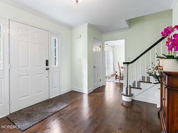 Welcome to this beautiful colonial-style home with 4 bedrooms, 2.5 bathrooms, sitting on 0.98 of an acre, level, fenced, corner property. The interior boasts hardwood flooring throughout, recessed lighting, and decorative moldings, creating a warm and inviting atmosphere. The updated kitchen is equipped with GE Café Series stainless steel appliances, granite countertops, and a central island, catering to culinary enthusiasts. Additional amenities include a semi-finished basement, a wood burning fireplace, spacious wood deck in the backyard and a two-car garage. The property is situated within the highly-rated Holmdel Township school district and is conveniently located near transportation options, shopping centers, local dining, parks and area beaches.