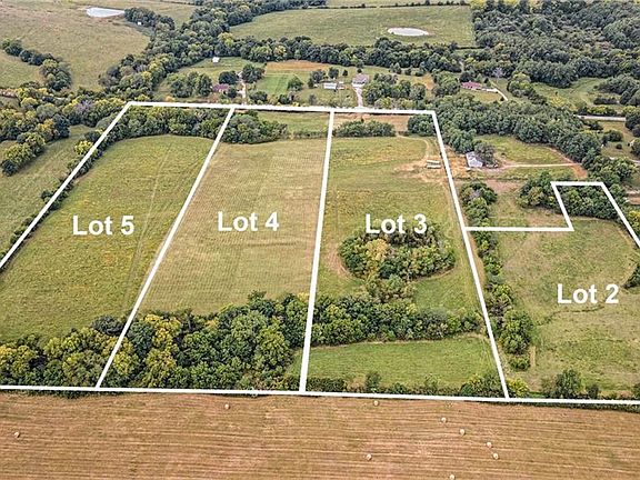 Estate lot with 5.01 acres. This location offers all the serenity of life outside city limits with easy accessibility right off of 33 and only 10 minutes to I-35 and 30 minutes to Downtown Kansas City. Trees line three sides of this parcel providing an idyllically private location for your new dream home. Water and electricity are available at the asphalt road. Access will be through an easement on Lot #1.Land of this size, location and condition is rare and can only be truly appreciated by viewing in person. Please schedule an appointment before entering the property.