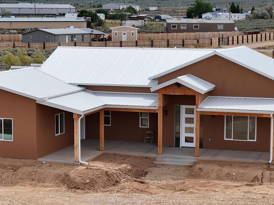 Under Construction, soon to be completed. This stunning, meticulously crafted home is a true masterpiece, offering a perfect blend of spaciousness and coziness. With high ceilings and a modern finish, the home presents elegance and comfort, ready for immediate enjoyment. The thoughtful design ensures no detail has been overlooked, showcasing exceptional craftsmanship throughout. Located near premier amenities such as golfing, biking, and walking trails, the property also provides convenient access to the charming town of Taos and is just a short drive from Santa Fe. The expansive porches are ideal for hosting family gatherings or relaxing with a book while taking in breathtaking vistas. This property is currently 2 bed 3.5 baths however can very easily be converted to a 3 bedroom home as the Garage has radiant heat and has big windows as well its own full bath. Inside, the home features two generously sized bedrooms and 3.5 bathrooms. The oversized garage offers plenty of natural light through large windows as well as the rest of the home. The Garage offers versatility as a potential studio space. This property is an extraordinary opportunity to embrace luxurious living amidst the beauty of northern New Mexico.