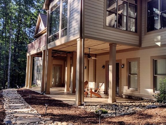 Four bedroom, 4-1/2 bath gem is situated on 1.25 tranquil acres in the stunning Cliffs Valley gated community. Expertly built with gorgeous stone work & finishes, this craftsman style home captures the changing seasons & the beauty of nature with the strategically placed windows throughout. The main entrance invites you into the foyer of the Great Room of the open floor plan. A stunning new state-of-the-art gas fireplace with new hearth, floor to ceiling stonework and custom live edge mantel from a local sawmill with custom built-ins flanking both sides. Hardwood floors throughout much of the home and extensive crown molding. The Great Room has soaring cathedral ceiling with 8ft sliders to the covered upper deck overlooking the serenity of the outdoors and the added masterfully created walkway around the property with two stoned berms for easy access to gardening or additional patio environment. The centrally located gourmet kitchen is well-appointed with granite counter tops, down draft and 5 burner gas range on a large cooking island with enormous amount of storage and electrical outlets installed; GE Profile stainless steel appliances, new microwave; recessed and under-counter lighting. Enjoy the good-size walk-in pantry. Kitchen opens to the bright Sun Room with gas fireplace and magnificent tongue and groove ceiling highlighted by the floor to ceiling windows. Dining Room displays an impressive deep tray ceiling accented by chair rail and a 2-sided glass cabinet & counter for easy access and service with the kitchen. The private main level Primary Suite has peaceful, bright views, double-tray ceiling, an En Suite w/ new claw foot soaking tub and spacious walk-in shower. Enjoy the convenience of two large separate walk-in closets. The Laundry room that has an abundance of storage and wash tub as well as powder room are also located on the main level. Lower level is split floor plan set to entertain or sleep guests with it’s two complete ensuite bedrooms and large entertaining area with gas fireplace, wet bar; all with double slider access to the large covered patio. A walk-in cedar closet is conveniently located on the lower level. Two large storage rooms over 400 sf (not included in house sf) are also conveniently located on the lower level. Upper level is a large Guest Suite (497 sf) with full bath and abundance of storage. Recently painted interior. New garage door and epoxy floors in this two car garage. New window blind treatments as well as many new fans and light fixtures. This home has a pre-wired generator and a flat driveway!