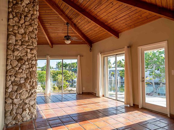 Welcome to this unique canal-front retreat on a coveted 10,000 sq. ft. corner lot in the upscale waterfront community of Key Haven. Ready for your personal finishing touches, this custom three-bedroom, two-bath home features soaring open beam ceilings, spacious rooms and numerous windows and sliding glass doors that provide panoramic views of the expansive sun-kissed outdoor space with enchanting views down the extra wide canal. The oversized lot has plenty of room for a pool, pool house, tiki-hut, RV parking and more. There's a two-car covered carport and a concrete seawall with dockage for 2 boats. With excellent boating access to the Gulf and Atlantic, you'll be just minutes away from world class fishing and beautiful off-shore island beaches and sandbars. Not to mention, you'll be within biking distance of the activities and excitement of Key West. Bring your creativity and contractor and create your personal waterfront Oasis in the Florida Keys. Owner financing for well qualified buyers.