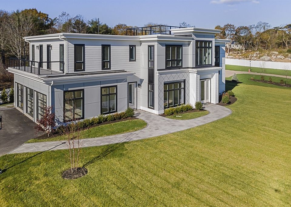 Ultra Modern home steps from Gloucester beaches in private new 3 single family home cul de sac. 1st floor features thoughtfully designed Chef’s kitchen w/Thermador appliances, custom cabinetry, quartz countertops & oversized center island. Butlers pantry leads to large dining room and great room, hardwood floors and high ceilings with private study. Floor to ceiling windows flood the room with light & look out upon your expansive, private backyard patio. The 2nd floor offers a spectacular primary suite w/private deck. The ensuite full bath serves as spa-like sanctuary, w/quartz countertop double vanity, soaking tub, oversized tile shower, high-end lighting fixtures and ceramic tile flooring. A generous, custom walk-in closet & dressing area is the final touch of this serene primary retreat. 4 additional spacious bedrooms and 3 additional large bathrooms, featuring the same high-end thoughtful touches and finishes. Large Roof deck with water views complete the home.