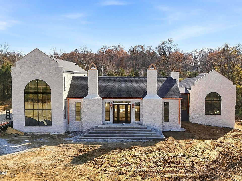 From the moment you arrive, the striking stone façade, grand arched windows, and twin chimneys make a commanding impression. Inside, the thoughtfully designed main level features soaring ceilings, wide open living spaces, and walls of glass that flood the home with natural light. A dining area and chef's kitchen flow seamlessly into a sun-drenched family room, perfect for everyday living and effortless entertaining. The private first floor primary suite is a true retreat showcasing stones and tiles throughout, while the additional 4 second floor bedrooms are ideal for family and guests. Enjoy top-tier finishes, designer lighting, custom millwork, and attention to detail throughout while still having the opportunity for customization and personal touches. Perfectly situated on a generous 1.74 acre lot with a circular drive, lush landscaping, and room for a pool, this home is the ultimate blend of style, comfort, and convenience in one of Oldham County's most prestigious enclaves.