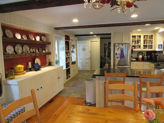 Beautiful edge of village setting. The period features and grace of this period home are retained with the updates desired today in the energy efficient and convenience. The country kitchen with dining area and wood stove leads to the screened porch for summer dining or to catch a cooling breeze. This also over looks the back yard and hill of apple trees that have been pruned yearly by an arborist. The abundance of space allows for guests, separate office spaces, quiet reading or hobbies. The barn has served many purposes in the past such as home industry and, studio and gym. This charming village is just 15 minutes from Brattleboro and about 20 minutes to Mount Snow.