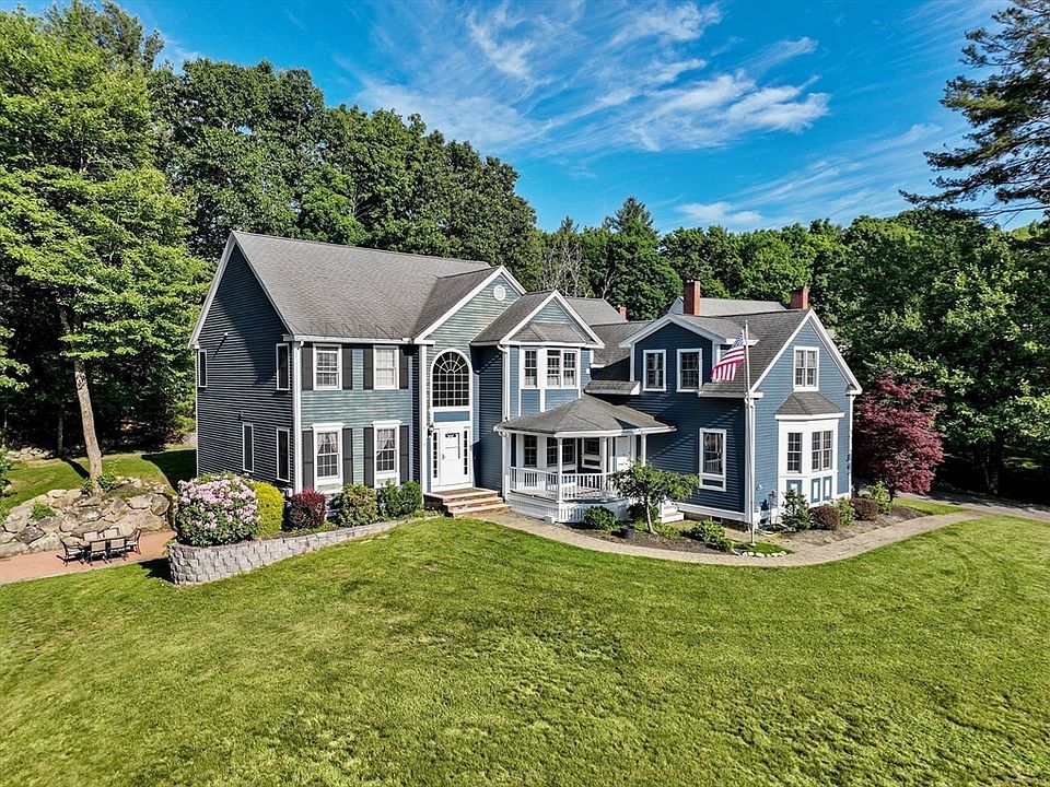 A gracious home awaits you in Westford. Set on 1.29 private landscaped acres with a sparkling pool in coveted Barrister Drive Estates. The finely-designed 5,000+ sf residence offers 2 generous light-filled stories, plus a wonderful day-lit lower level with a recreation room & media/bonus room optimizing comfort for your living-entertaining needs. On the main level, an inviting entry foyer with hardwood floors & an elegant turned staircase greets you. Beyond you’ll find a large living room,family room with soaring vaulted ceilings & a fireplace, beautiful cook’s kitchen with a breakfast nook, sitting room + additional den. There’s also a private office with interior & exterior access, and a convenient guest powder room. Upstairs houses an enormous primary bedroom retreat with 2 walk-in closets & a spa-like en-suite bath, as well as 3 more bedrooms, a 2nd full bath & laundry room. Other highlights are a 2-car garage, lovely outdoor patio, deck, 15 kW generator, central AC & scenic view.