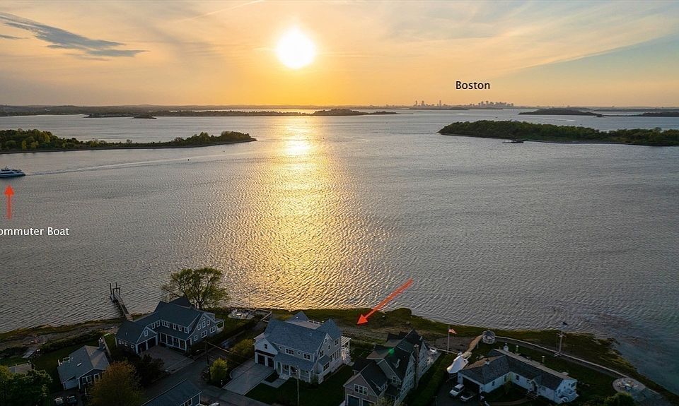 Stunning, WATERFRONT home on a 1/3 of an acre lot, 3+ years young, with over 5100 SF of living space and unobstructed VIEWS of Boston Skyline. This state of the art home features a chef's kitchen with beautiful custom cabinetry and high end appliances/amenities OPEN to a fabulous Family room with a 2 story wall of windows that floods the home with beautiful natural light and affords maximum views. The first floor also offers a cozy sunroom, beautiful dining room, a first floor guest bedroom that could also be a primary suite, and a gracious foyer that captivates you the moment you enter the house, because of the jaw dropping views. Upstairs there are 4 additional BR's and 3 full baths, including a LUXURIOUS primary suite w/ "to die for" closets and bath. The 3rd floor offers a game room with built in bar, large seating area, an office, half bath and LOTS of storage. Gorgeous deck with built in grill, hot tub and outdoor shower and rare level lawn space. The SUNSETS are mesmerizing!