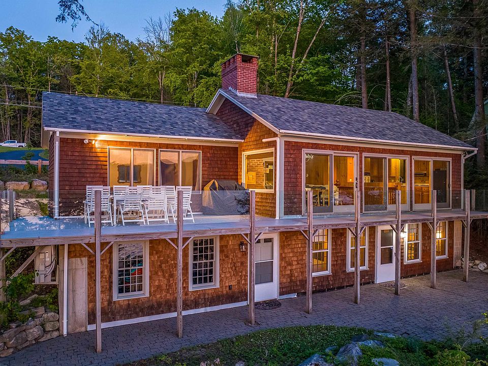 If you are looking for spectacular long-range views, amazing sunsets, and a move-in ready home on the shores of Lake Winnipesaukee, look no further, 2 Bickford Lane in Alton is the one for you. As you pull into the driveway of this property you are instantly welcomed by the view of the lake. Entering the home through the mud room, you will be stunned by a full wall of sliders looking out to the lake and mountains beyond. A large fireplace is the focal point of the open concept main floor. A generous sized main bedroom boasts natural light, large windows, and a large walkthrough closet. A full bath and laundry room complete the main floor. The deck off this level offers composite decking, glass railings to maximize the scenery, and will be your favorite spot to dine. Downstairs you will find a large family room, second bedroom, ¾ bath, and an additional sleeping area. A lower level patio offers a private outdoor seating area. The walkway to the dock (a combination of ramp and stairs) is also a maintenance-free composite material. The waterfront consists of a 40 foot deep-water dock with breakwater and views to mount major in one direction, and out to Rattlesnake Island and beyond in the other. As a member of the Black Point Association you will also have use of a gorgeous private beach in Chestnut Cove. Property is convenient to downtown Wolfeboro via land or lake, offering plenty of restaurants, shops, and more. Lake Life awaits!!