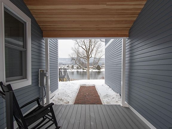 This home was completely remodeled in 2020. Featuring hardwood floors, open kitchen with granite countertops and high end appliances. 3 season screen porch and deck overlooking the lake. Detached oversized 2 car garage with 24x30 bonus room above. 17x20 master suite overlooking Lake George. Finished walk-out basement with adjoining covered patio. New dock and lakeside deck. Room for everyone. Efficient heating and central air systems featuring two furnaces and on demand hot water and second floor laundry. Fully landscaped. 87' of direct lakefront!