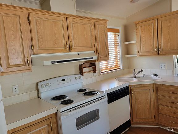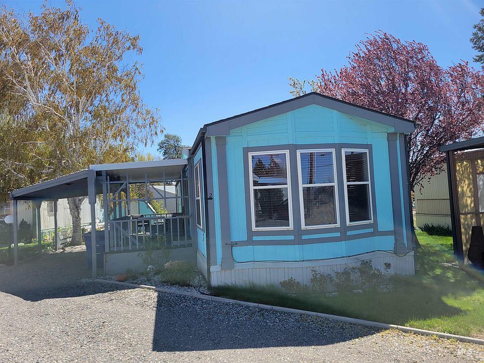 Very clean home with 2 bedrooms, storage shed, carport, covered patio, all set up in an over 55 park. This home has many upgrades like a new shower, carpet, and new wooden blinds. Space rent is $400 per month which includes water, sewer, and garbage. Located in beautiful Hagerman where you can fish, hunt and be close to the river.