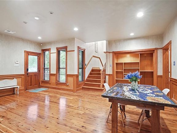 office and garage. A long wall of windows provides brilliant natural light in the large kitchen that includes a gourmet gas stovetop, and a large walk in pantry. The attached keeping room offers a cozy place to unwind, dine and keep the cook company. Flowing hardwood floors lead to the primary bedroom which serves as a true owner's oasis featuring an oversized closet, cathedral ceilings and a relaxing primary bath with a huge shower and soaking tub. A notable aspect of this spacious residence is the detached guest suite, which offers a generously sized bedroom with a lovely en suite bathroom. The out building houses a separate office, and a oversized 2 car garage with a generous workshop area providing ample space for projects and storage. The backyard is truly a parklike setting with ultimate privacy, wood decking and a spacious cabana providing a prime spot for grilling and crawfish boils.