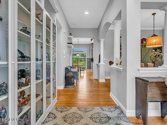 Welcome to 2 Bracken Court in Howell! This 4-bedroom, 3.5-bath home offers elegance and comfort throughout. The primary suite features walk-in closets and a spa-like bath with soaking tub and separate shower. A junior princess suite also includes walk-in closets and a private full bath. The laundry room is conveniently located on the 2nd floor. Inside, enjoy hardwood floors, an open kitchen with stone tile extending from ceiling to counter, and a cozy gas fireplace. Designer Restoration Hardware and Pottery Barn light fixtures are included. The expansive attic offers endless possibilities for an in-law suite, additional bedrooms, or another bath. Outdoors, relax in your private retreat with a hot tub, gorgeous patio, and serene views of the pond and protected reserve land. Additional features include a sprinkler system and invisible dog fence. This property does not require flood insurance, but buyers should perform due diligence.