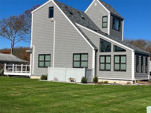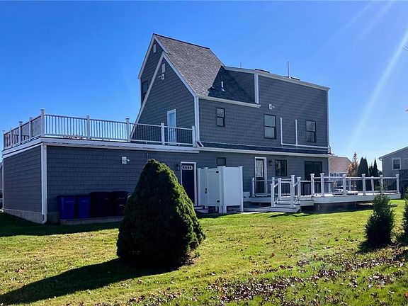 Exquisite light filled 3-story contemporary home sits graciously on a large corner lot in the always desirable Eastward Look neighborhood. Only 2/10 of a mile to North Scarborough Beach, this beauty is meticulously maintained. It has hardwoods, luxury vinyl planking, vaulted ceilings and skylights, tons of storage. Brand new kitchen with stone counters; 2 spacious decks to lounge on: 1 facing east capturing the morning sunrise over the ocean, and 1 facing west offering brilliant views of RI’s spectacular sunsets. Oversized bedrooms, central a/c with supplemental mini-splits, huge garage, spacious outdoor hot/cold shower, large shed. This house comes fully furnished, has a 2-year-old roof, new windows and siding. Absolute turnkey! 2 Bristol Road has a tremendous rental history for both the vacation and academic seasons!