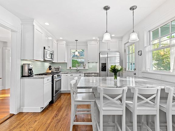 This is the one! Welcome home to this wonderfully updated and spacious Colonial located in close proximity to all of Beverly's attractions: a bustling downtown, beaches, parks, and commuter rail. A humble and charming curb appeal leads to over 1,800 sqft of living space, starring the modern eat-in kitchen with quartzite counters, new appliances, large peninsula, and oversized pantry cabinets. The main level provides an open plan between living room, dining room, and four season sunroom leading to a quaint, fenced-in, low maintenance yard. All bedrooms have hardwood floors, ceiling fans, and plus size custom closets. A home office and walk-up finished attic room offer flexible spaces for today's homeowner. Updates include exterior paint (2023), water heater (2022), insulation (2021), 200 amp electrical (2019), roof (2015), and hi-efficiency gas heat with central AC (2012). On a quiet, L-shaped street with ample driveway and detached garage. Write your next chapter at 2 Burton Ave!