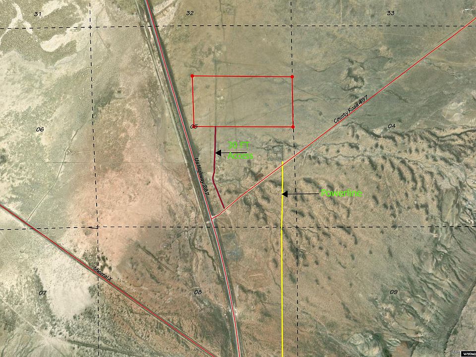 BLM land borders along the property east boundary there are no utilities and no fenced in borders currently. Resources in Rawlins, Wyoming are 16 miles south and access is ideal just off the County Rd. 487 which connects directly to Highway 287. Building in Carbon County RAM Zone is primarily agriculture / mining and has restrictions as to what is built in the zone, you can contact the zoning office at 307-328-2651 Nice level easy to get to lot with no covenants and 30ft easement on driveway to property. Powerline less than 1/4 mile but currently not energized.