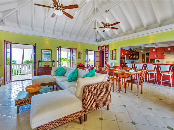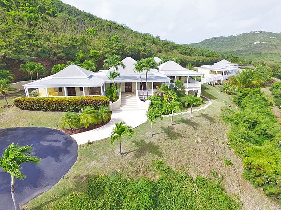 “YACHT CLUB HILL” is an exceptional West Indian estate with a 2 Bedrooms plus Office/3rd Bedroom & 4 Bath (including 1 half bath) main home consisting of 2888 sq. ft., and a 2 Bedroom plus Exercise Room/3rd Bedroom & 3 Bath guest quarters of 1450 sq. ft., each with its own pool and gated entrance, home has split A/C throughout and situated on approximately 8.4 acres of lush, tropical landscaped and very private grounds on Yacht Club Hill. And with all this living space comes a hi-tech net metering solar system with 86 panels that produce 100 KW/day. This system is integrated with the house WIFI to monitor and track power production via an iPhone application. Additional energy efficient amenities are the IntelliFlo variable speed pool pumps, roof solar system on the main pool, RO plant on the water system with cistern transfer ability between homes, and LED lighting both inside and outside both homes. This richly appointed and solidly constructed home offers unparalleled comfort and a subtle blend of modern and local culture with West Indian shutters, Mahogany doors and windows, locally made Taylor tile, and custom mill work in all beams throughout. The open design of the home provides constant breezes and accessibility to all amenities as desired. The gourmet kitchen in the main house includes stainless steel appliances, Sub-Zero fridge and bar freezer plus Wolf chef's range and chic Corian countertops w/ custom tile backslash. The sweeping West Indian welcome staircase gives way to separate masters w/ sprawling mahogany open closets & en-suite baths. The main master suite includes French doors w/ custom etched glass, huge open bath w/ custom tiles and unique shower windows to ocean views. The office/3rd bedroom is equally private and en-suite with a unique bath, custom mahogany cabinetry featuring Sub-Zero fridge pull-doors for refreshments, and is currently used as an office and conveniently located poolside. Entertaining is easy and convenient as the great room opens to the outdoor Danish brick entertainment area with pool, BBQ & wet bar. Enjoy exceptional views of sunsets over the Caribbean Sea and watching boats come in to dock, while entertaining friends and family. An attached walkway off the pool area connects guest quarters with its own private pool, and outdoor entertainment area w/ hookup for BBQ. Enter through mahogany doors to a living, dining area w/ full kitchen & SS appliances. Located upstairs are 2 bedrooms en-suite w/ split A/C's, sprawling open baths and mahogany cabinetry. 3rd suite is downstairs used as a fitness room w/ split A/C, full bath plus washer & dryer. Guest driveway includes a 3-car carport and there is extra storeroom space in both homes below, including A/C in both, and an additional full bath conveniently located in the main storage area for cleanup as needed. A 16KW auto-start generator powers both houses when needed. The reverse osmosis water plant on the well in the generator shed was installed in early 2016, and produces 2 gallons/minute. There is water transfer ability between the main house cisterns and guest house cisterns, and both houses have micron water filters and UV treatment. Additional features include electric gates on both houses, which can be accessed via key chain remotes and/or driveway key pads, and each house has a separate security code, and pet-friendly invisible fencing around both properties. YACHT CLUB HILL offers unbeatable luxury and privacy, for a family or corporate entity seeking spectacular views, top of the line features, and with energy efficiency in mind!