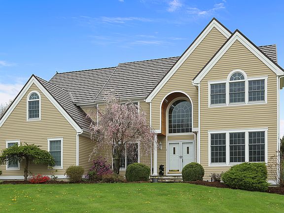 Welcome to Cale Farms custom built colonial offering picturesque views & a lifestyle you have been dreaming about. No expense spared w/a new stylish design Metal Future Roof System, Lifetime Warranty (100 yr roof), along w/a new Kohler whole house generator! As you open the front door you will be in a light filled atmosphere due to lofty ceilings & oversized custom windows. Sunken living rm w/detailed moldings, formal dining rm, large family rm w/fireplace open to beautiful EIK kitchen w/granite counters. Sliders in kitchen lead to a private outside Oasis w/in-ground pool, hot tub & sprawling patio w/awning. Mature trees & plantings abound! Convenient front & back entrance staircase to upstairs level featuring: Luxurious, Grandiose Master Bedroom w/pretty tray ceiling, sitting room, office, large walk-in closet & oversized master bath. Generous size bedrms. Enormous walkout finished lower level w/many possibilities, ton of storage rooms, wine cellar, massive attic & massive driveway.