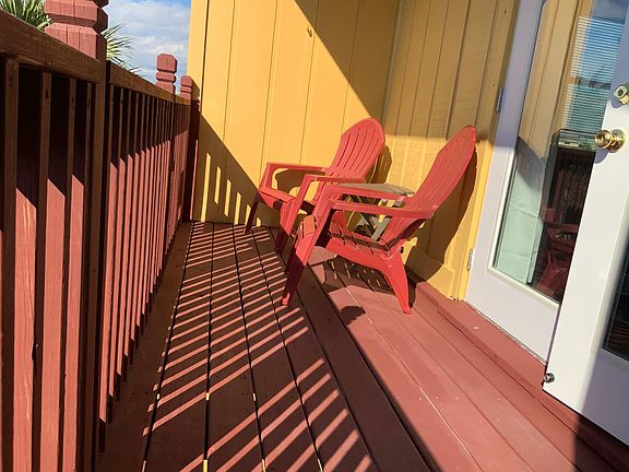 Very well maintained. New vinyl flooring throughout. Central heat/air. Ceiling fans. New large windows. French doors to the upstairs deck off the master bedroom. The large sliding door downstairs opens out to the downstairs deck - sunshade blinds on deck for hot days. French doors off the master bedroom opens to the upper deck, which also has sunshades. Both decks screened in for privacy and weather protection.
