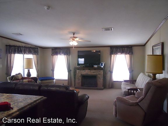 Country property - Three bedroom, 2 bath manufactured home with large living room, open kitchen with bar, pantry, dining area and utility room. Large master suite, Master bath with 2 sinks, soaker tub and separate shower. No Cats Allowed (RLNE5612390)