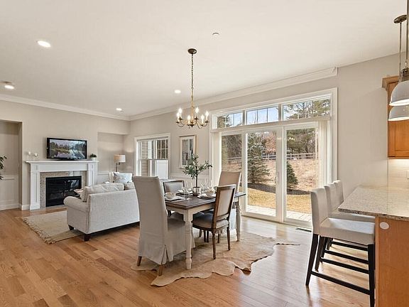 Sunny, like-new town home in Hamilton's newest 55+ community The Village at Canter Brook Farm. This stylish and bright home is filled with charming details – 10' ceilings throughout the 1st floor, transom windows, gleaming hardwood floors, crown molding and custom details. This 2+ bedroom (one on each level), 2 1/2 bath "Equestrian II”" model offers single floor living including a primary bedroom with closet and en-suite bath, beautiful and well-appointed kitchen with island, open living/dining room with fireplace, guest bath and laundry all on the first floor. Oversized sliders lead to the expansive private patio and landscaped yard. Upstairs, you will find a loft area perfect for family room/home office, and another bedroom with walk in closet, full bath, plus a large bonus room finished except for flooring. 2 car garage, central air, generator, water softening system and large basement. Care-free living at its best in one of the north shore's most desirable community.