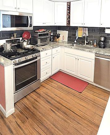 Approx 800sqft well maintained two bedrooms one bath, half inch hardwood floors throughout, split A/C system, washer & dryer connections, whole house water filtration system with private fenced side yard, corner lot. No property tax, one parking spot in driveway additional parking close by. Has separate 8x10 storage shed with electricity and plumbing.