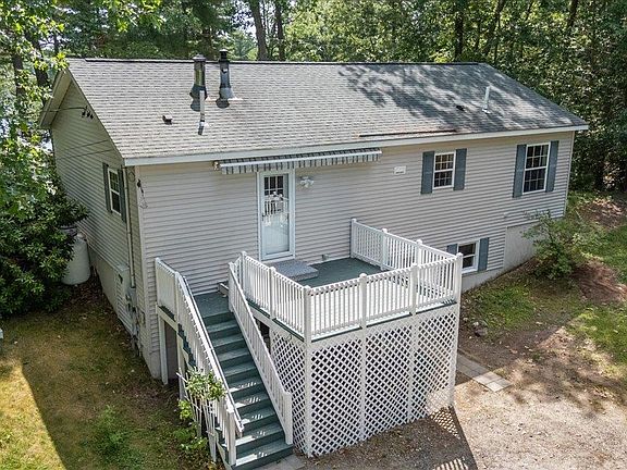 Discover peaceful country living in this charming ranch-style home set on 2.69 beautiful acres with a tranquil view of Powwow Pond. A perfect blend of open and wooded land surrounds this inviting property, ideal for nature lovers and garden enthusiasts alike. Enjoy outdoor relaxation on the spacious deck with a retractable awning—perfect for morning coffee or summer evenings. Inside, the home features a large eat-in kitchen with ample cabinet space that opens to a cozy living area with gleaming hardwood floors. The primary bedroom offers a full bath and walk-in closet, while two additional bedrooms, plus a second full bathroom provides flexibility for guests or home office use. The walk-out basement is a dream come true for hobbyists or small business owners—featuring 1,144 sq ft of heated space with built-in storage, ideal for a workshop, studio, or creative retreat. Modern comforts include central air conditioning, a monitor heater, & a whole-house standby generator for peace of mind year-round. With plenty of open space for gardening, play, or outdoor gatherings, this property offers the best of rural serenity while still being conveniently located. Launch your kayak or canoe at the town landing or enjoy the private beach for residents only, just minutes away. This property also has a deeded 16 foot ROW to the pond. A unique opportunity to own a home that blends functionality, comfort, and natural beauty!