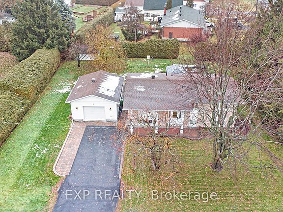 This well-maintained 3 bedroom, 2 bath high-ranch bungalow on a corner lot in Embrun offers an ideal blend of comfort, space and SEVERANCE POTENTIAL. The bright main level features a welcoming living room flowing into the kitchen and dining area. The kitchen includes breakfast bar seating, quartz countertops and patio door (2024) access to the back deck. Three generous bedrooms are located on the main level, served by an updated full bathroom (2025). Hardwood flooring throughout the main level with ceramic in the bathroom.The fully finished lower level offers a spacious recreation room with dry bar, 3-piece bathroom, laminate flooring, and ample storage. Enjoy a private backyard retreat with gazebo, large deck, and plenty of green space, ideal for kids, pets, gardening, or relaxing. Convenient storage shed included. Additional features include a newly installed forced air heat pump, heated detached garage with epoxy flooring, ample driveway parking, and 200-amp electrical service. Ideally located within walking distance to schools, parks, grocery stores, pharmacies, and daily amenities, and just 25 minutes to Ottawa. A versatile, family-friendly home in a quiet Embrun neighbourhood. Go take the tour!