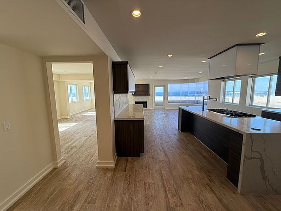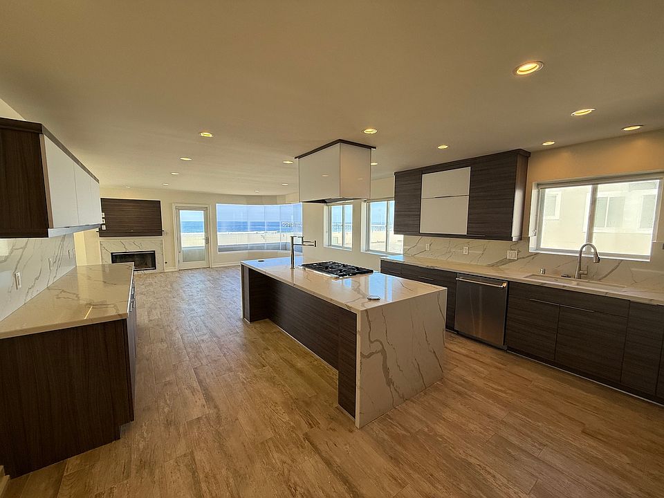 Spectacularly remodeled ocean front unit on the Marina Peninsula! Unit has lots of light, 2 gas fireplaces, tile & stone floors throughout, quartz countertops in the kitchen with stainless appliances, air conditioning & heat. Private balcony off living room is perfect for watching the beautiful California sunsets! The den can be used as office or family room. The spacious master bedroom has a walk-in closet, private balcony with city and ocean views. Master bathroom has large shower, stand alone tub and his & her sinks. Separate laundry room with washer/dryer & laundry sink. Elevator in building. 4 car garage parking. Pets subject to owner's approval. Owner pays water. Tenant pays gas & power.