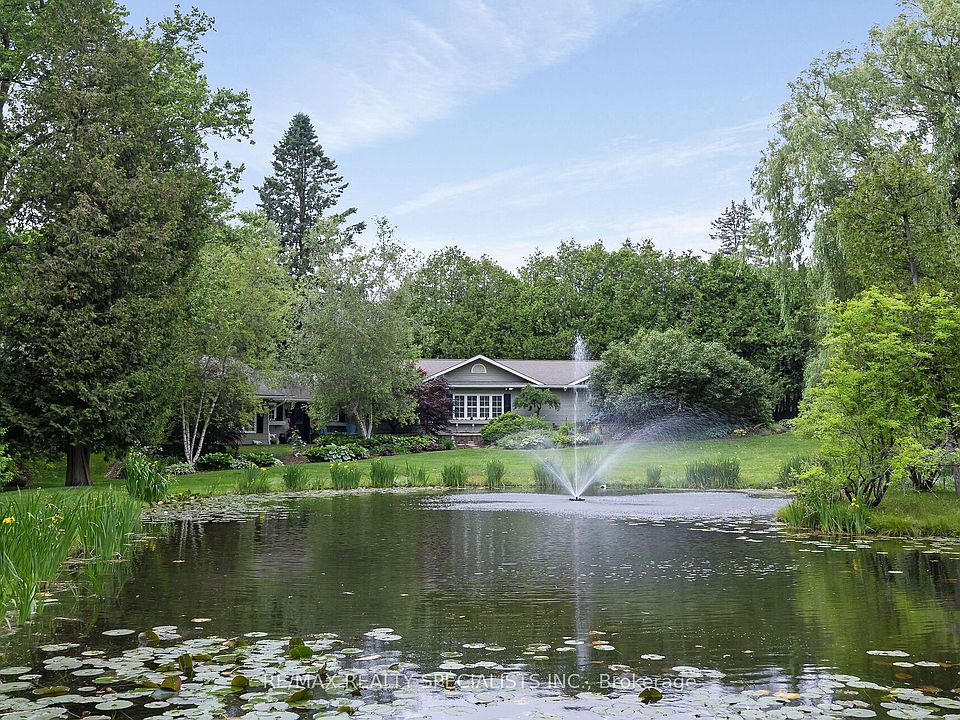 Discover luxury, privacy, and thoughtful accessibility in this 5-bedroom, 3-bath executive bungalow, nestled on 3.4 acres in sought-after Caledon. Boasting approximately 3,600 sq. ft. of impeccably designed living space, this residence blends sophisticated modern finishes with warm, timeless details.Step into an inviting, barrier-conscious foyer that opens into an expansive open-concept great room. Gleaming hardwood floors flow throughout, complementing near floor-to-ceiling windows that frame serene views, including a private pond with its own island. The family room and living room are anchored by a double-sided fireplace, sleek electric on one side, gas on the other, perfect for both intimate evenings and grand entertaining. The state-of-the-art kitchen is equipped with top-tier stainless-steel appliances, custom cabinetry, quartz countertops, a coffee bar, and a spacious eat-in layout with room for a full-size dining table, ideal for family meals, homework sessions, and everyday gatherings. Adjacent, the formal dining room offers a refined setting for elegant entertaining. A dedicated multi-generational wing features a luxurious bedroom suite w/private access, ensuring comfort and independence for family members of all ages and abilities. Spa-inspired bathrooms showcase premium fixtures, roll-in and rain-head showers, and designer tile work. Two separate energy-efficient heating and cooling systems provide year-round comfort and long-term savings. Outdoors, your personal oasis awaits: a heated saltwater pool w/waterfall, adjacent patio and gazebo, mature trees, and professionally landscaped gardens offer ultimate seclusion. Thoughtfully designed for easy living and mobility, this home offers wide, wheelchair accessible doorways, minimal transitions between indoor and outdoor spaces, and easy flow throughout. Perfectly positioned just minutes from major highways, it provides an effortless commute to Toronto while preserving a tranquil country-estate lifestyle.