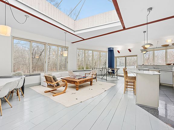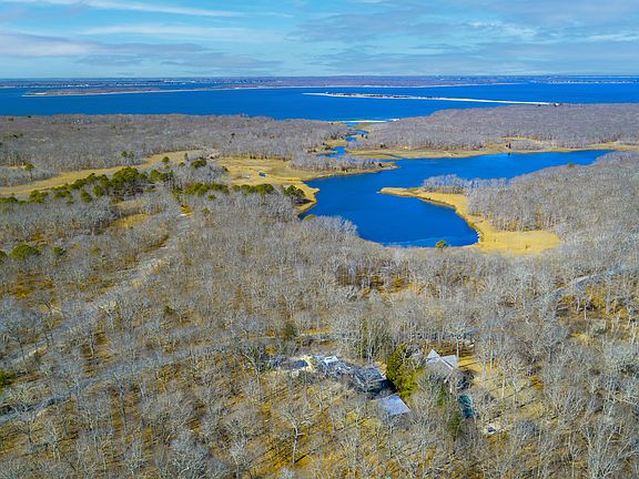 Nestled on a tranquil 3.12-acre property between the charming villages of East Hampton and Sag Harbor, this contemporary masterpiece offers the ultimate haven for creativity and relaxation. Set on an east/west axis, this home is bathed in natural light, offering breathtaking views of the surrounding woodlands and distant winter water views. The expansive 3,600-square-foot residence features sleek, modern design with an emphasis on open, airy spaces. The open-concept kitchen, living, and dining areas create an expansive space perfect for entertaining or quiet reflection. The door from the kitchen opens onto a large deck, surrounded by treetops and overlooking a pristine pool, creating a serene treehouse ambiance. This retreat is not just about beauty, but also functionality. The home features generously sized bedrooms, all designed to let in as much natural light as possible. The primary bedroom boasts a cozy sitting area, perfect for quiet moments of inspiration or relaxation. The property's 2,000-square-foot basement with soaring 12-foot ceilings offers boundless potential. Whether you envision a multi-car garage, an art studio, a recording space, or a home theater, this versatile space is ready to adapt to your needs. Just across the street, the 600-acre Cedar Point Park provides miles of hiking trails through picturesque oak and pine groves, wetlands, ponds, and creeks, offering an unparalleled sense of seclusion and connection to nature. The private guest quarters with its own entrance ensure that friends and family can enjoy their own space, while the gunite pool and summer kitchen invite outdoor living at its finest. With central air-conditioning, 12-foot ceilings, and a seamless connection to nature, this property offers everything you need to live, create, and unwind in perfect harmony. Don't miss the opportunity to own this stunning artistic retreat – where nature, design, and inspiration converge.