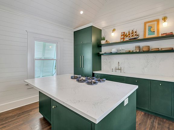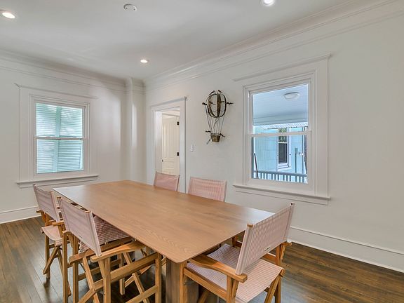 Renovated to perfection, this historic gem once the Sergeant's Quarters circa 1910 seamlessly fuses timeless charm with modern luxury. Offering 5 bedrooms and 4 bathrooms, the home features a welcoming front porch overlooking a lush private lawn. Inside, original stamped tin ceilings and refinished hardwood floors showcase its preserved character. Expansive living and dining areas lead to a state-of-the-art kitchen with an 84" custom JennAir fridge, sleek PITT gas stove, and double SMEG ovens. Designer touches include custom-built platform beds with LED lighting, intricate woodwork, and a bespoke office with built-ins. The main level hosts the primary suite plus a versatile office or sitting room, while four additional bedrooms are upstairs. With ample parking and a landscaped yard large enough for a future pool, this home sits in Tybee Island's serene Historic North End, just steps from the Lighthouse, North Beach, and Memorial Park offering the perfect blend of history and luxury.