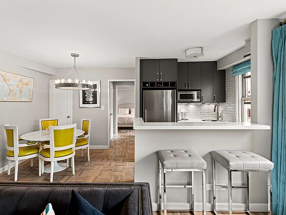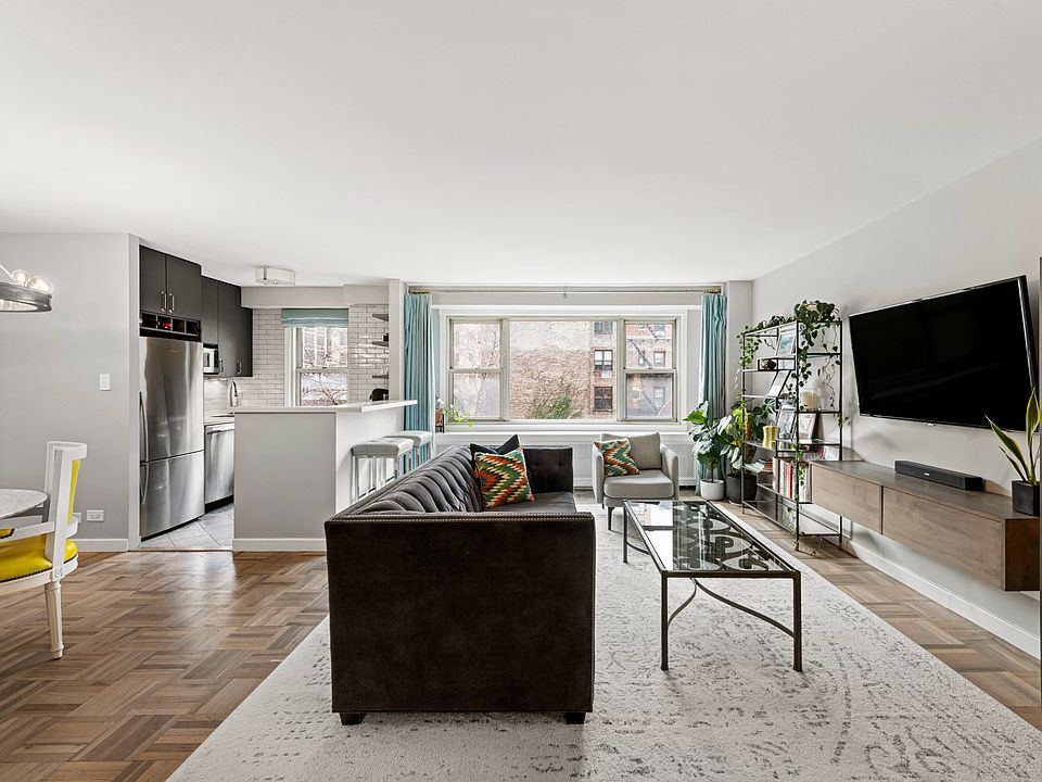Welcome to this elegant, extra large light-filled 1 bedroom residence boasting beautiful herringbone wood floors and generously sized, light-filled rooms. Entering this quiet and sunny apartment, you'll feel right at home. Large windows face west onto a serene and perfectly maintained courtyard garden. The bright and airy living room offers ample space with a separate dining area that perfectly fits a table for four. The open-styled, windowed kitchen features high-end stainless-steel appliances and a subway tile backsplash by Waterworks. Enjoy an utterly silent king-sized bedroom that has no connecting walls to any neighbors, featuring a large window, and a walk-in closet. The bathroom features classic appointments and a soaking tub. There is abundant closet space throughout the apartment. A truly wonderful home, perfect for anyone who wants a peaceful, sunny, and generously laid out apartment in New York City! Located in Hudson Square, The Charlton is a beautiful red-brick post-war, mid-1960s building. This well-run, full-service co-op has a 24-hour doorman, live-in superintendent, laundry room, bike storage, attached garage and a beautiful common garden for all residents. Pets (including dogs) are welcome, as are parents purchasing for employed children. This fantastic neighborhood has an unbeatable location, providing residents immediate access to SOHO, the West Village, and Tribeca. This picturesque tree-lined street has been named one of New York's best by TIME OUT magazine and is what people dream of when picturing the classic New York neighborhoods. Residents are just steps away from shopping, dining and transportation (A, C, E, 1, 2 trains are within a short 2-block radius).
