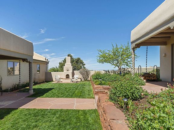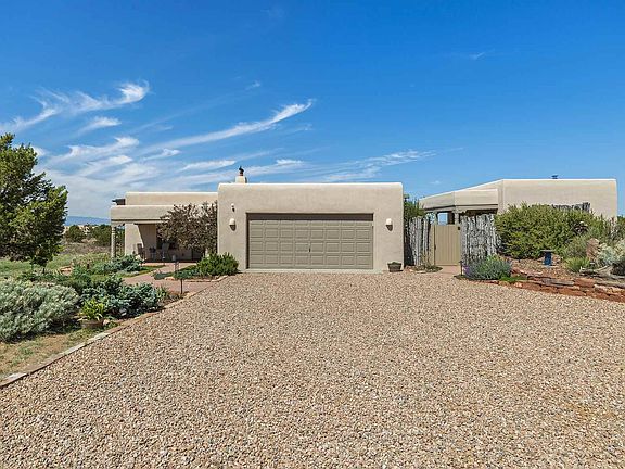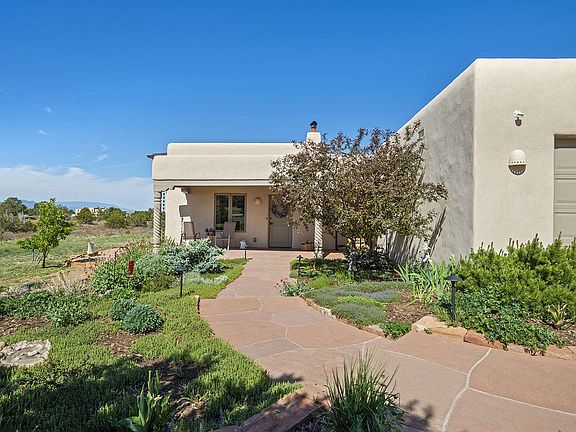 THE BELLE OF THE BALL. Come and see this spectacular Eldorado property with a 613 square foot studio with 3/4 bath, beautiful mountain views and four wood burning kiva fireplaces. NEW GACO 100% Silicone roof in June 2019. Ten-year warranty transferable to buyer. Chef's kitchen opens to living and dining rooms and has two large pantries. The grounds are extensively and beautifully landscaped including a rose garden. Abundant natural light from numerous skylights and tall windows. Master bedroom has picture window to the mountain views, private portal, coved ceilings, kiva fireplace, grand walk-in shower and double sinks. In-floor natural gas radiant heat. Plumber says NO KITEC. New refrigerator. Studio has 5 skylights, kiva fireplace and lovely views.Passive solar design. Generous 1.9 acre lot on a greenbelt. Two apple trees, 1 pear tree. Two steps up to garage. Otherwise all single level. Close to pool, park and shopping.